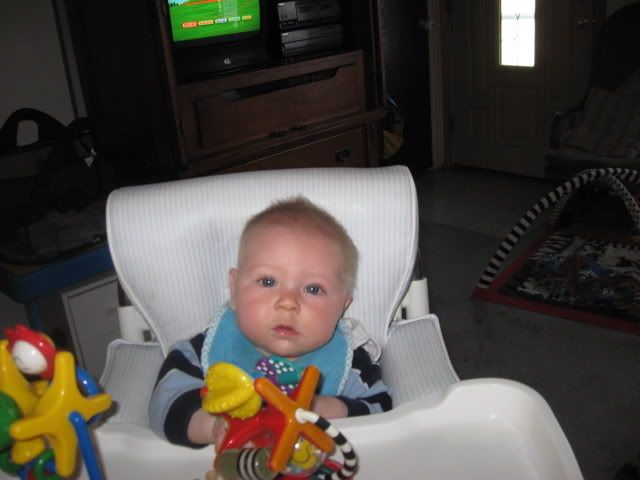 He loves sitting in his high chair for family meals with us now...(he used to hate the high chair!...just two weeks ago!)